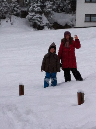 Auch die allerjüngste Generation liebt das Häusle im Großen Walsertal sehr. Der im Winter vom Pflug aufgeschobene Schnee-Hang vor dem Haus wird immer wieder neu entdeckt, als Ameisenbau, Iglu-Konstruktions-Fläche, Rodelstrecke...